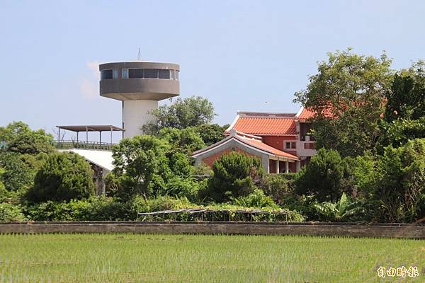 前農委會主委范振宗宅邸外型酷似機場塔台的建物,他說其實也只是一座水塔。(記者黃美珠攝)