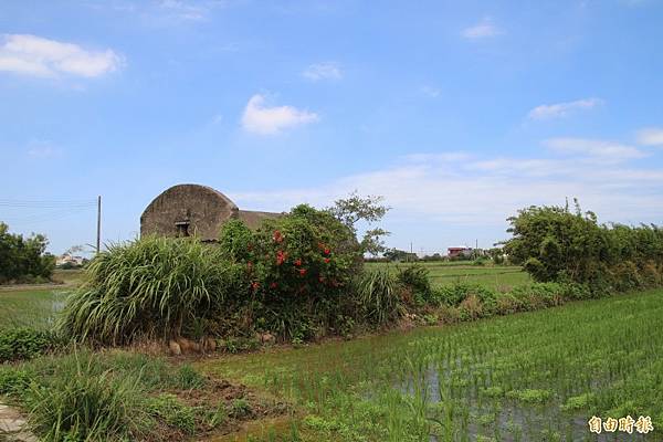 位於新豐梁家土地上的日軍水塔遺跡外觀古樸典雅。(記者黃美珠攝)