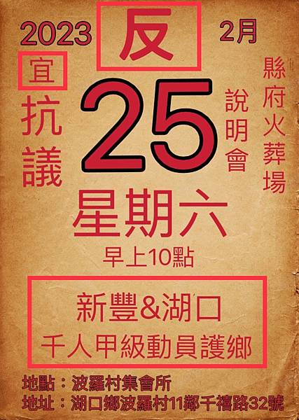 湖口場縣府火葬場說明會-2/25(六)早上10點-波羅村集會所-湖口鄉千禧路32號