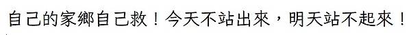 自己的家鄉自己救!今天不站出來,明天站不起來!