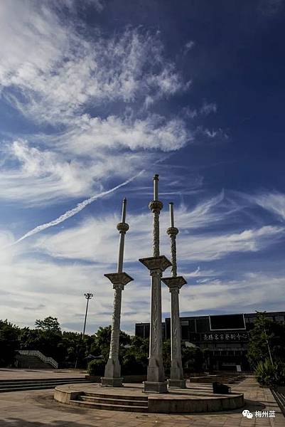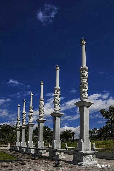 梅州市近年新建的院士廣場中央便矗立著三根石楣桿。這三根石楣桿高近15米,分三節,桿身圓形,桿尾漸收,下節直徑約60厘米。東面楣桿的第一節雕刻了素潔的朵朵蓮花,周圍祥雲繚繞,盤旋而上,蘊含著客家讀書人所推崇、所追求的高潔品行和精神境界;西南面石楣桿的中段自下而上浮雕盤柱蛟龍,洋溢著世代客家人不甘沉淪、不屈不撓、奮鬥不息的精神;西北面石楣桿的中段浮雕魚躍龍門,鯉魚在浪花飛濺的激流中翻騰跳躍,象徵著客家人從古至今的激流勇進和人才輩出。