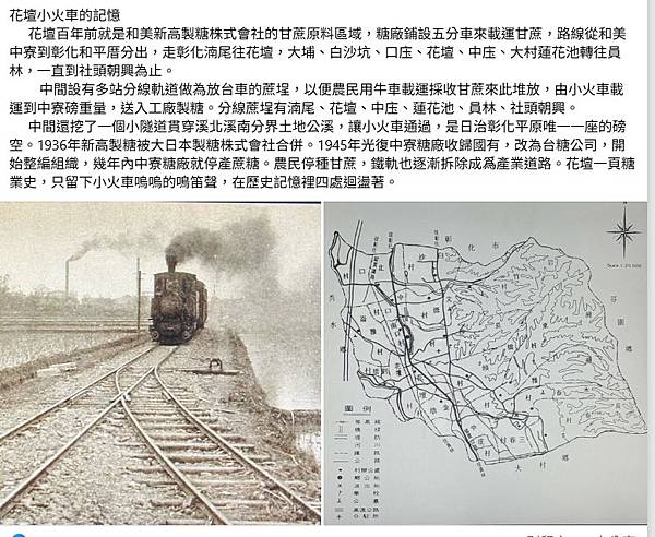 中間還挖了一個小隧道貫穿溪北溪南分界土地公溪,讓小火車通過,是日治彰化平原唯一一座的磅空。1936年新高製糖被大日本製糖株式會社合併。1945年光復中寮糖廠收歸國有,改為台糖公司,開始整編組織,幾年內中寮糖廠就停產蔗糖。農民停種甘蔗,鐵軌也逐漸拆除成爲產業道路。花壇一頁糖業史,只留下小火車嗚嗚的鳴笛聲,在歷史記憶裡四處迴盪著。