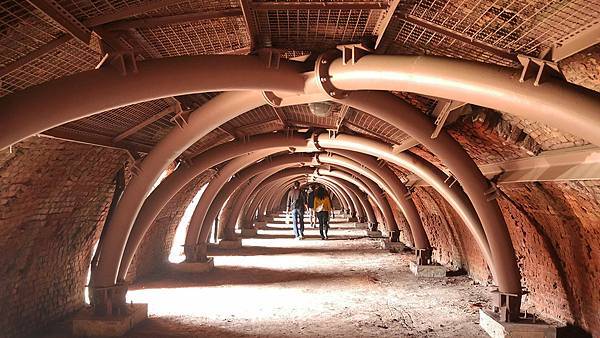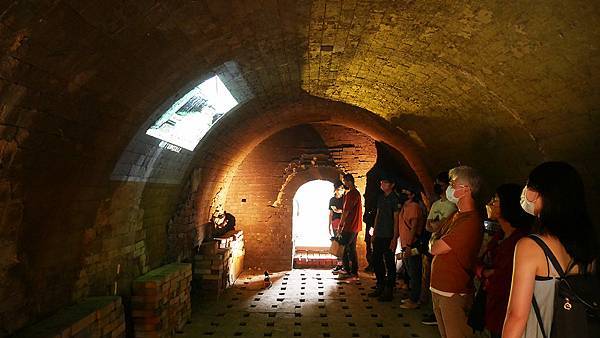 窯體內部有許多「加固拱圈」也算是保護這個古蹟吧!延著這座窯體內部的隧道是可以像操場一樣走一圈的,在光線投入下還是蠻好看的。