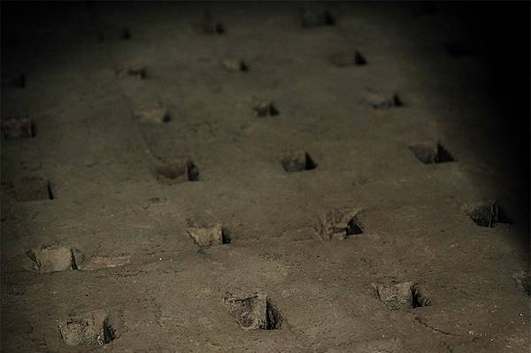 倒焰窯內部,半圓空間底下的窯床布滿矩陣方孔。