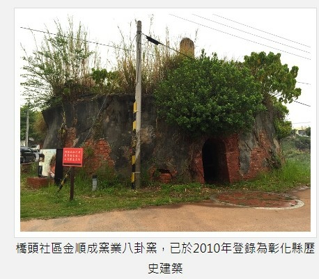 橋頭社區金順成窯業八卦窯,已於2010年登錄為彰化縣歷史建築