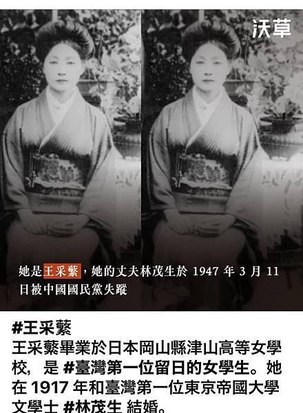 王采蘩畢業於日本岡山縣津山高等女學校,是 #臺灣第一位留日的女學生。她在 1917 年和臺灣第一位東京帝國大學文學士 #林茂生 結婚。