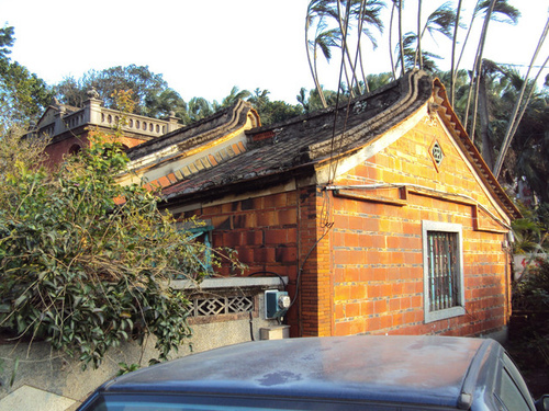 由其硬山頂、台灣瓦、陽台深度不足與並非室內每間房間都有門直通陽台等特點,說明此屋並非