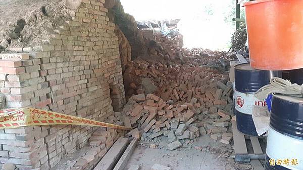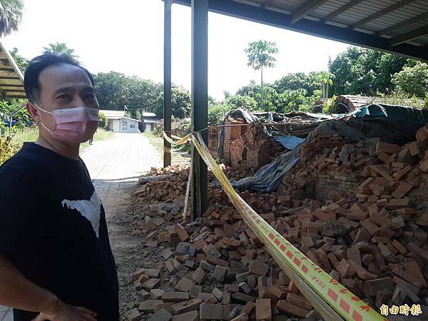 昨晚的地震令磚廠倒掉只剩1目還算完整,第蕭仁義説,這是歷史建築,會再向縣府爭取修復。