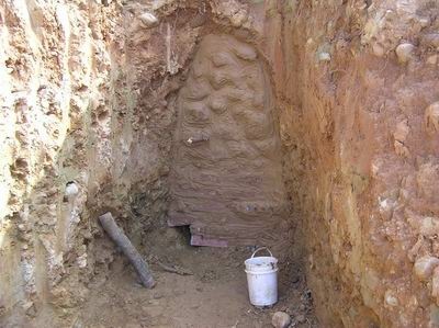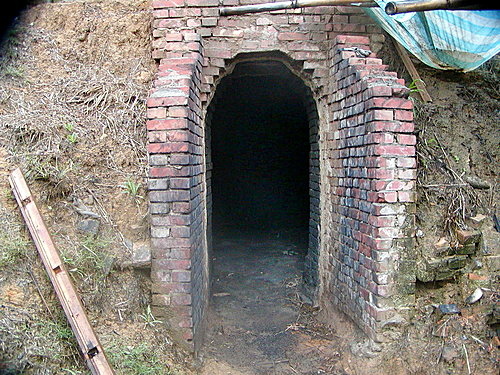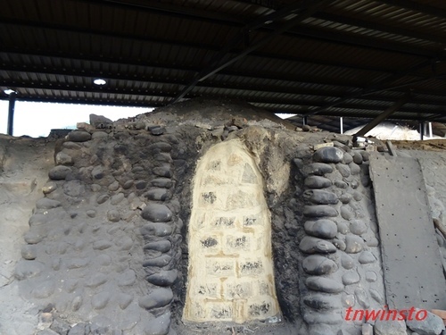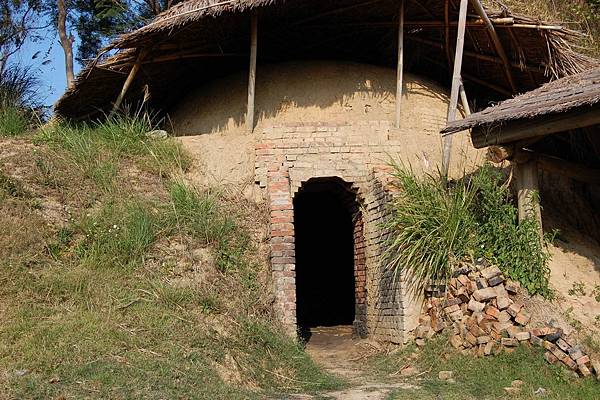 梁木炭窯入口處旁邊有座廢棄舊窯可清楚看到窯內部構造