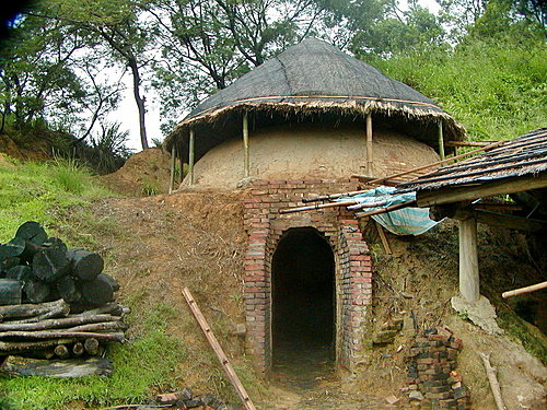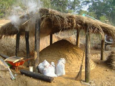 台灣木炭窯的製炭歷程已經有六到七十年的歷史了,那麼木炭窯是怎麼製造的呢?從最底層說起, 木炭窯的基底是利用大塊土角磚堆起來的,窯的上方則是用未窯燒過的小塊土角磚鋪在上面,木炭窯內的溫度可以達到攝氏800度以上,如果窯頂沒有用生的土角磚鋪好的話,木炭窯就容易會被燒壞。