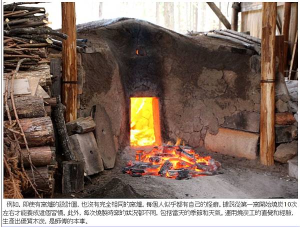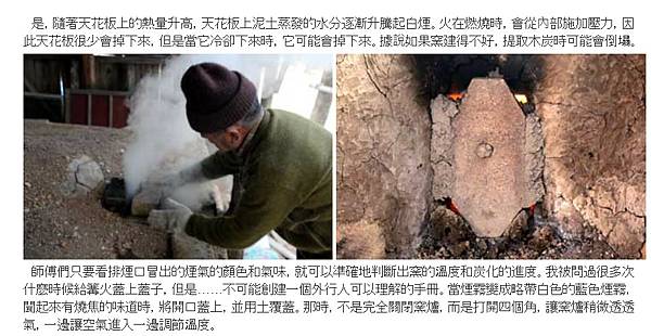 然後封閉燒柴口和頂部的排煙孔,讓「陰火」(熱氣)將樹幹悶至少一、二十天以上