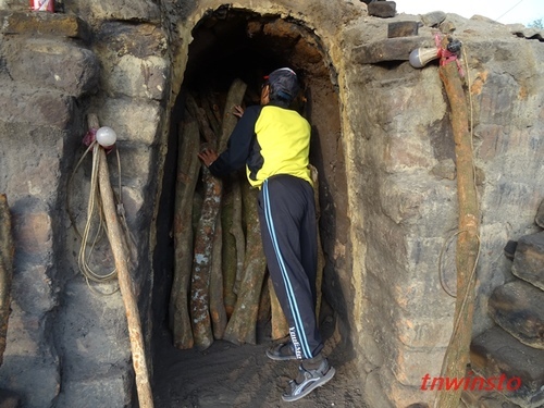 這是出炭口,上方的鐵皮是防土窯淋雨倒塌用