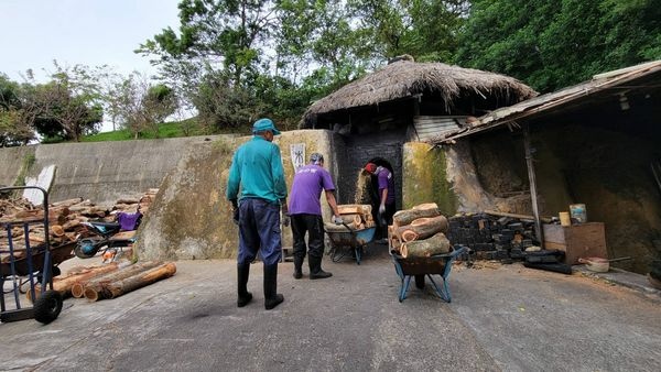 ▲▼木炭的家以相思木為主原料,鋸木前依習俗要先拜樹木再鋸,顯示敬天也謝神,充分傳達悲天憫人的胸襟,接著再將成段鋸好的相思木載到窯口,以人手依大小陸續排進木炭窯內。 ▲新竹寶山木炭的家。(圖/寶山鄉長邱振偉提供)