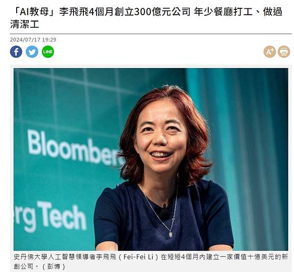 「AI教母」李飛飛4個月創立300億元公司 年少餐廳打工、做過清潔工 - 自由財經