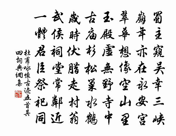 《詠懷古蹟五首》是杜甫於公元766年(大曆元年)在夔州寫成的一組詩。夔州和三峽一帶本來就有宋玉、王昭君、劉備、諸葛亮等人留下的古蹟,杜甫正是借這些古蹟,懷念古人,同時抒寫自己的身世家國之感。這是第四首。