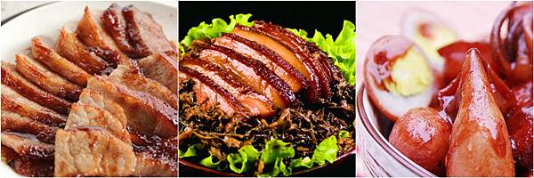 九大簋的菜式必備的燜豬肉,花的工夫特別多,要用豬踭位,貪脂肪分佈平均,肥而不膩,將肉加上豆豉、果皮、薑絲等同放於缽中,燜足兩日才大功告成。