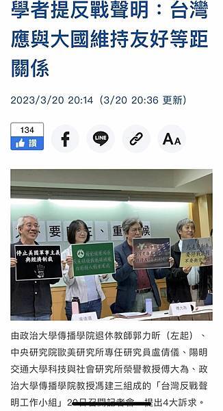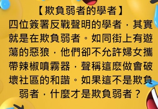 近日拜讀四位教授的「反戰聲明」和記者會言論,四位教授憂國憂民,令人欽佩。可惜四位對國際關係事實認知謬誤,邏輯混亂,特指出來與你們商榷。