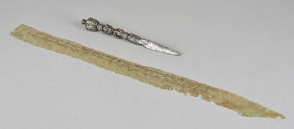 蒙藏文化中心指出,藏傳佛教法器普巴杵被視為是本尊佛的化現,經常供奉在壇城或佛龕、佛桌上,普巴杵被視為可利益眾生的聖物,因此高僧大德經常會互贈法器作為傳承的延續。這件伏藏「咕嚕秋旺普巴杵」經修復後,除了藏文文字記錄,清晰可見杵身下方三角錐各面皆有蛇紋,蛇紋下方特別刻有藏文「嗡、阿、吽」三個字母,代表諸佛的「身、口、意」,字母下方還有藏文文字,似為咒語,但因字體特殊,仍有待後續研究考證。