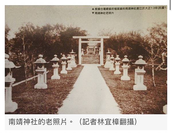 翻拍自田野影像復刻出版的《臺灣紹介最新寫真集》所收錄的南靖神社舊照片(《臺灣紹介最新寫真集》原為勝山吉作編輯、勝山寫真館於昭和6(1931)年出版,1997年時由田野影像復刻出版並命名為《台灣經典寫真・邂逅30年代Formosa》)