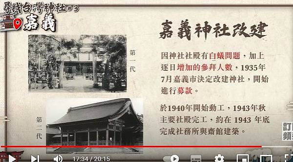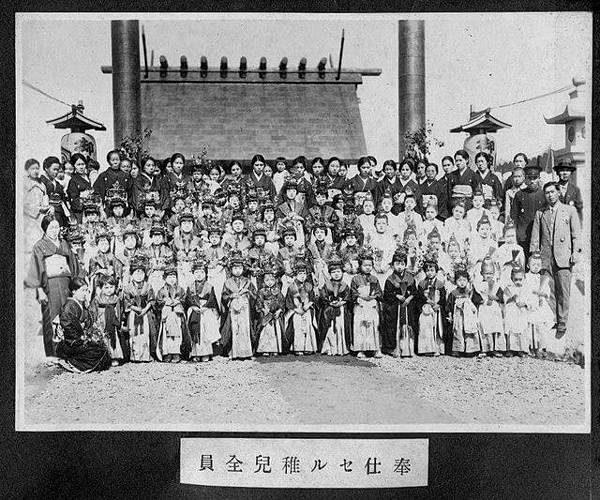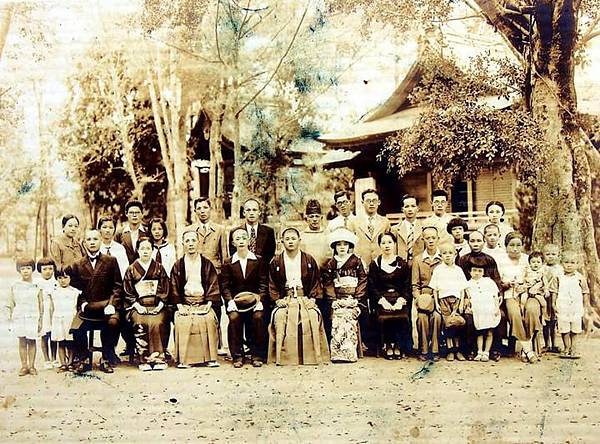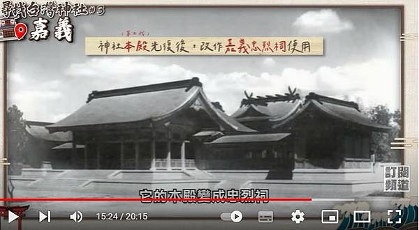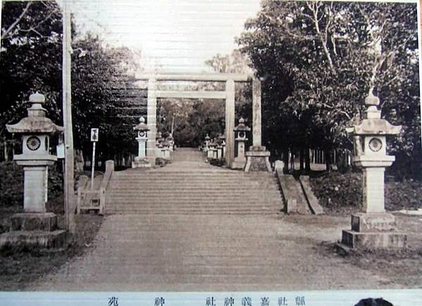 昭和時期嘉義高等女學校參拜嘉義神社景象-鞠躬的角度一致 這一定是有上禮儀課 並且不斷不斷的練習 全體達到幾乎一致的境界! 不知道日本現在的教育 還有沒有禮儀課這種東西??小學是道德課程(礼儀正しい)、中學是社會課程;私校則是另外制訂「礼法」課程。嘉義神社第一代本殿的水泥基座仍保留著,第二代本殿與第一代者轉了90度,二戰後改為忠烈祠,在改為射日塔前自燃。附屬的齋館(前往神社祭祀前齋戒和準備的地方)及社務所,連通後改為嘉義市史蹟資料館,值得參觀。