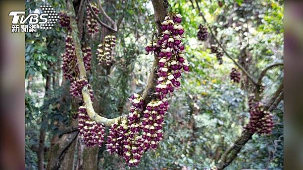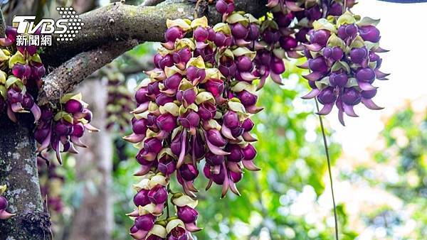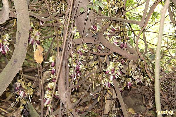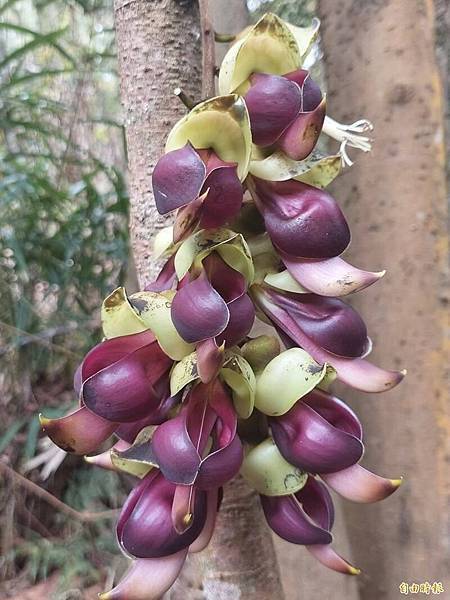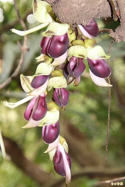 盛開的血藤花像是一串紫紅色的風鈴。(記者黃美珠攝)