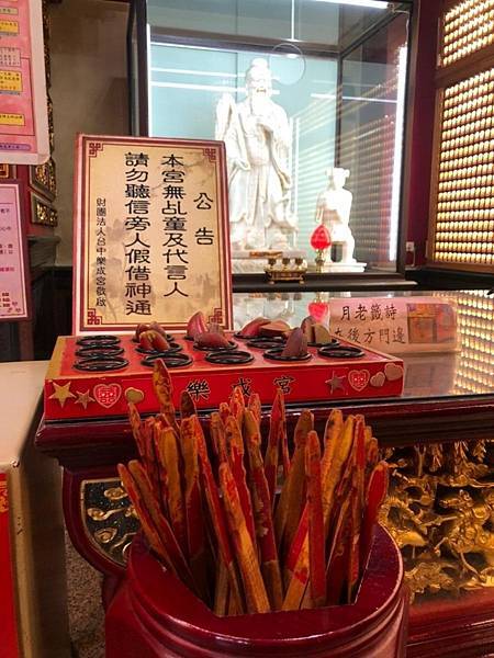 因為樂成宮的主神是媽祖,所以會在向媽祖請安的時候,告知身份以及來到樂成宮的事由,請媽祖保佑一切順利;然後在到月老殿的時候,一樣告知身份與事由,並跟月老說會先去拜訪神明一輪之後再回來繼續問事。