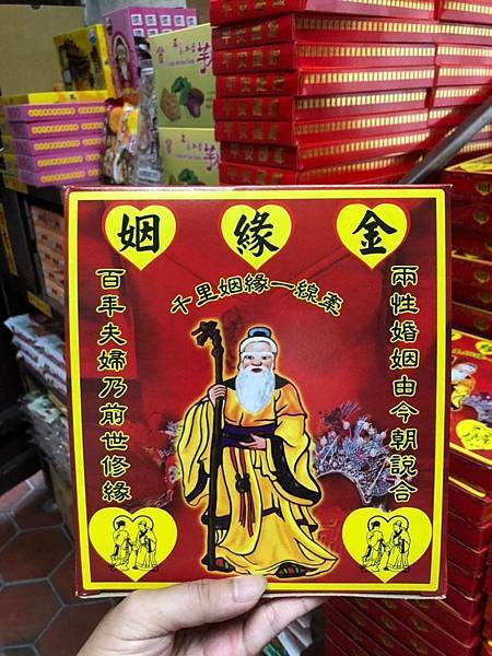 樂成宮的主神是媽祖娘娘,雖然我們來此行主要是為了求姻緣,不過還是要要準備媽祖金唷!糖果、餅乾等供品在樂成宮右側宮殿入口進去都有販售,大家可以看方便選擇;不過我有特別研究月老喜愛的食物,他老人家喜歡吃古早味的甜食,例如:甜湯圓、古早味糖果(白蔥糖)、巧克力等等,如果有心可以參考一下供品的部份唷!不嫌麻煩的話,最好多準備供品,讓月老感受到自己的誠意。還有切記準備的供品都要雙數唷!