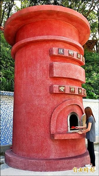 萬里情月老廟與中華郵政公司合作創設「愛神郵便局」。(記者何玉華攝)