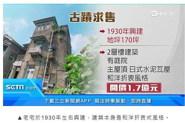 「暫定古蹟」求售1.7億 90年老宅待覓珍愛新主人