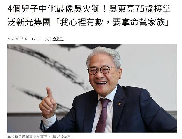 4個兒子中他最像吳火獅!吳東亮75歲接掌泛新光集團「我心裡有數,要拿命幫家族」 https://bit.ly/3Fg9Yek