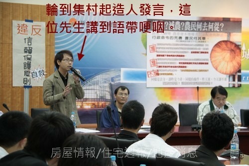 靳邦忠表示,集村農舍的銷售行為欠缺規範,建商常不顧水土保持法令,對現地以除草、整治溝渠等名目進行整地,不惜藉由農業單位罰鍰換取就地合法,製造該農地已取得建、使照的假象,作為吸引買氣的手法。