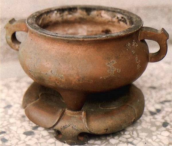 臺南首廟天壇所藏壓經宣德爐。圖版來源:冀甯道人、郭瑞雲編著,《府城道教廟宇文物集》(臺南:清流出版社,1988年),頁6。
