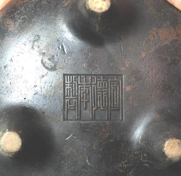 該件香爐年款透露非常重要的訊息:過去一般認為臺灣宣德爐產地以大陸東南沿海地區為主,而該件宣爐不僅證明了澎湖在日治時代已有生產銅器作坊,甚至還能製造銅質供器中較為高檔的宣德爐。不過,從器底年款可知,字體鑄造較為模糊,遠不及大陸所生產的宣爐底款字跡清晰。