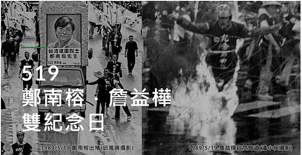 1989年5月19日鄭南榕出殯當天,詹益樺追隨鄭南榕,在總統府廣場自焚。