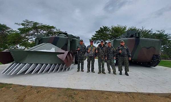 〔記者張勳騰/苗栗報導〕苗栗縣陸戰隊退伍軍人協會捐贈給縣政府,擺設在苗栗市貓裏喵親子公園的一輛陸戰隊LVTP5E1兩棲登陸工兵掃雷車(俗稱水鴨子),犁形掃雷器26支大鋼牙,今(4日)天被前往參觀民眾發現被偷走24支,苗栗縣政府獲悉報警處理,苗栗警分局派員前往採證,已全力追查。