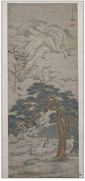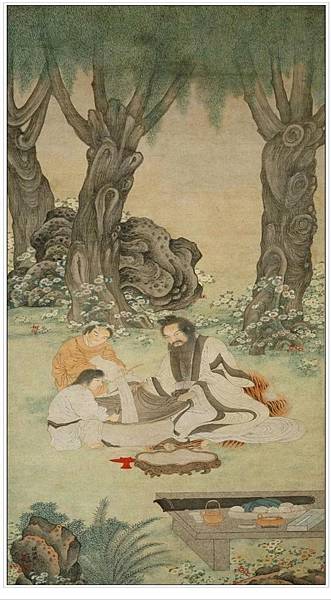 《三教圖》圖軸,紙本,設色,縱115.6cm,橫55.7cm。現藏台北故宮博物院。
