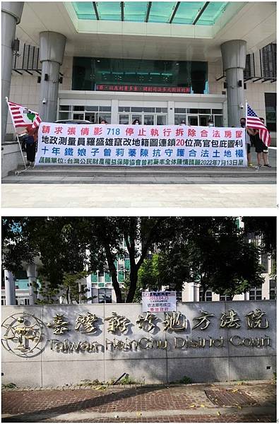 原本蒙在鼓裏的曾莉蓁親身受陷害,十年展開與地方惡勢力及司法周旋抗爭,歷經不斷學習和身心痛苦折磨,集思廣益深入探討,絕不妥協奮鬥到底永不罷休!小市民為了保護自己合法權益救濟,7月14日結合台灣全民財產權益保障協會、反公權力謀財害命自救會、台灣政府、中華民居住正義促進協會、台中司革會等正義民團50多人,於上午11點在新竹地方法院拉起特製24尺x5尺大布條抗議,彰顯惡勢力移花接木篡改地號,侵奪她的合法房地產惡行。