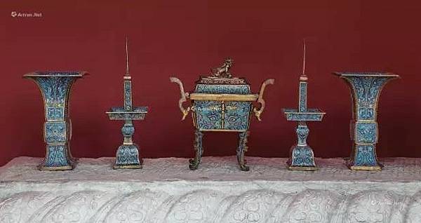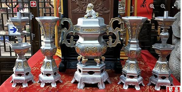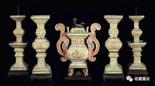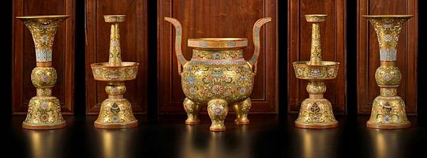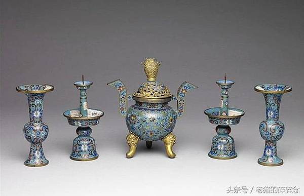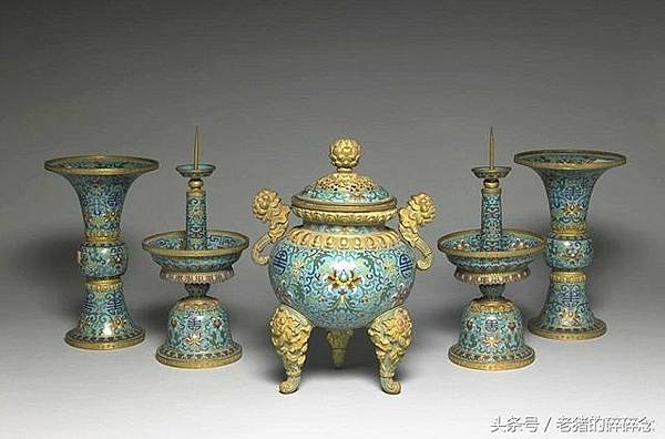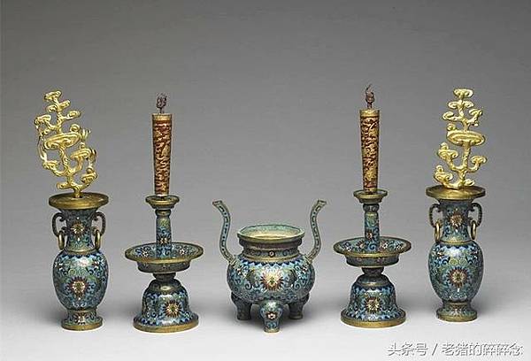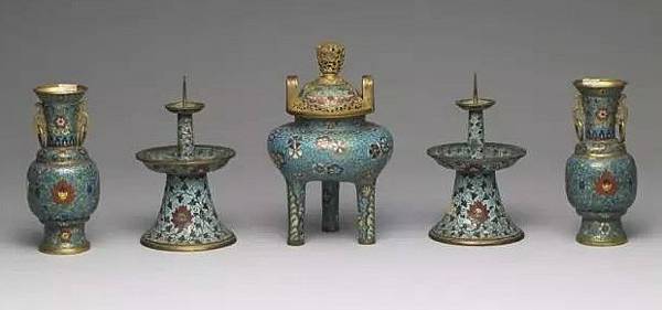 玉石、銅、錫、瓷、琺琅等各種材質的五供均可見到