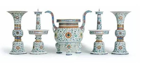0050 清乾隆鬥彩纏枝蕃蓮紋五供