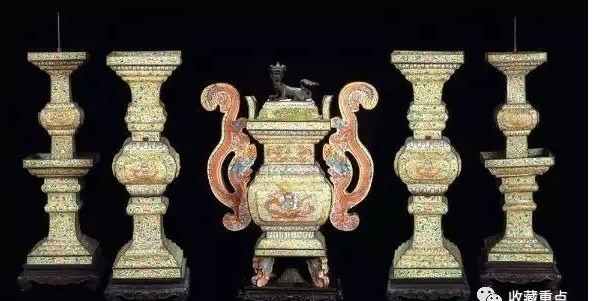 再一種為黃色琉璃五供,置於地下宮殿中殿,為地宮陳設品,如定陵。