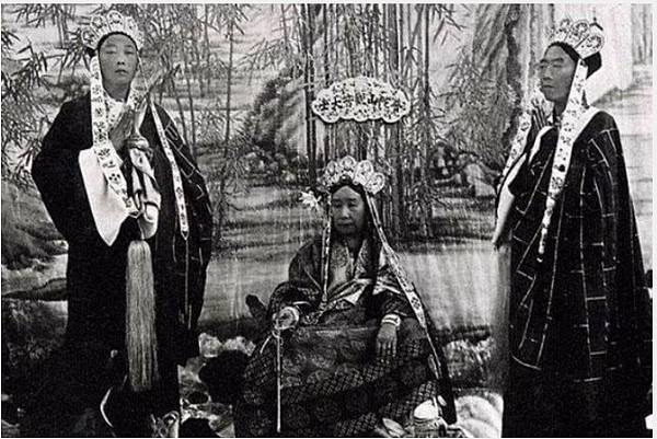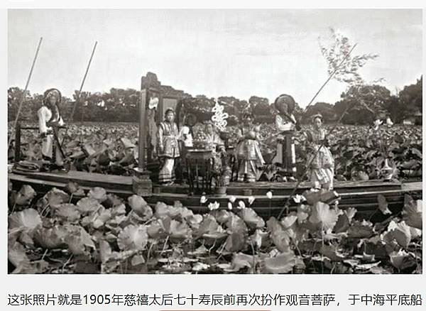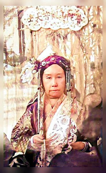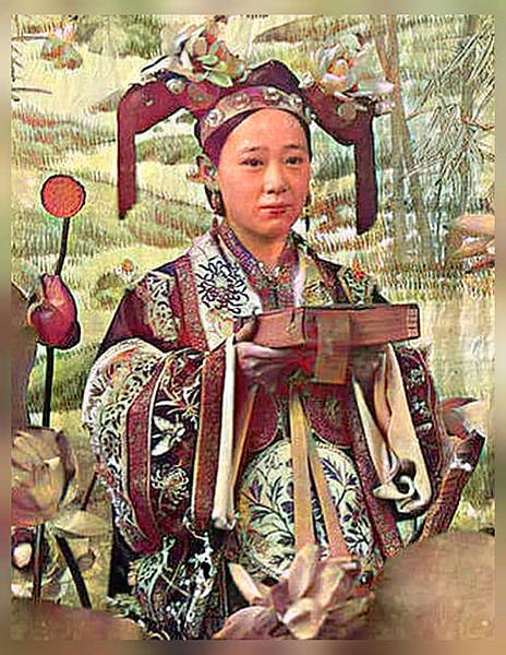清朝「慈禧太后」喜歡拍照表現自己,晚年痴迷角式扮演Cosplay,扮演觀音菩薩普度眾生,太監「李蓮英」扮韋陀菩薩,「四格格」扮龍女。colorized色彩版