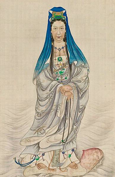 (#3203) 清光緒 傳屈兆麟作《慈禧扮觀音像》 設色絹本 掛軸 https://bit.ly/45Zrr3i