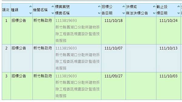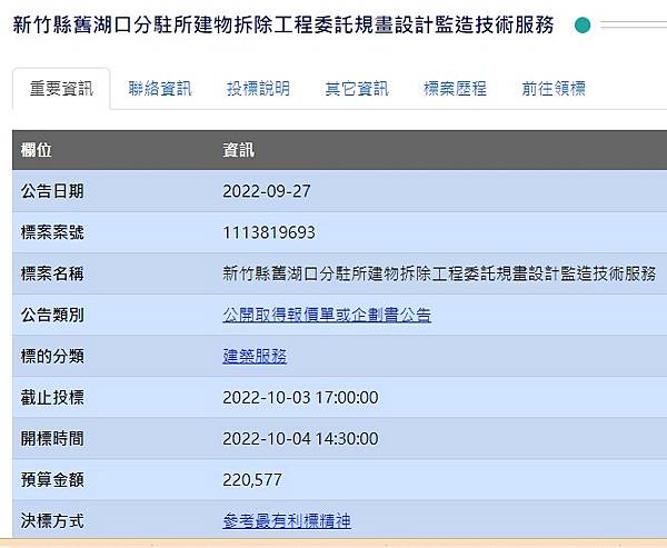 標案名稱 新竹縣舊湖口分駐所建物拆除工程委託規畫設計監造技術服務