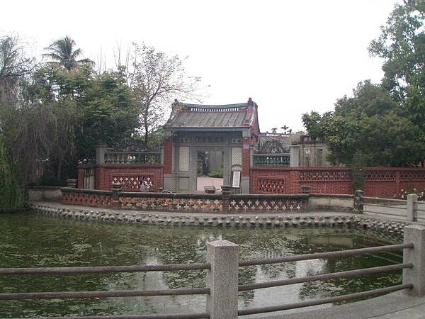 南投縣歷史建築敷榮堂,門前設有月眉池。(南投縣文化局提供)