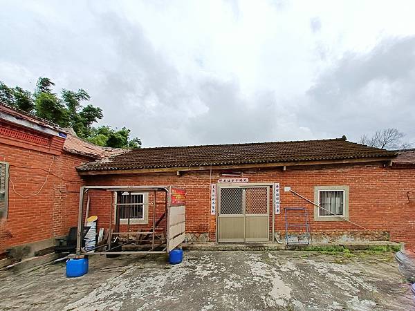 3、規模為兩進四護廊格局,正身座東北朝西南。第一進與第二進皆為五開間,內護龍做三開間,外護廊則區隔成七開間。第一進前步口廊作「雙凹壽」,為泉州地區民宅特有作法。