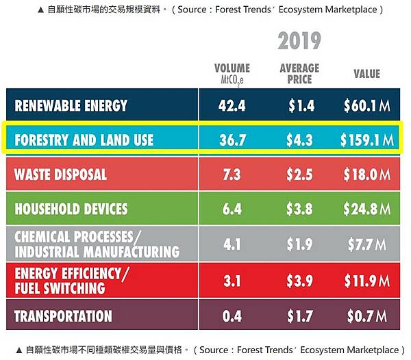 農委會於2021年9月成立淨零排放專案辦公室,盤點國內目前農業可提供的碳權交易超過500萬公噸,以國際CO2排放交易最保守行情1噸50美元計算,每年市場價值可達2.5億美元(約新台幣75億元),國內農業產值已有5000多億元規模,未來在碳權交易助攻下,在增加自然碳匯效益同時,也可以維繫生態多樣性,提升農民收益。
