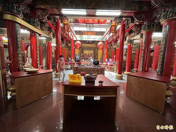 最大幅度的變革則是,原本白鐵製長形供桌,經設計團隊與廟方充分討論,改為兼具巧思實用的大紅色圓形供桌,讓空間變得更開濶更舒適,信眾也可以更靠近神明。