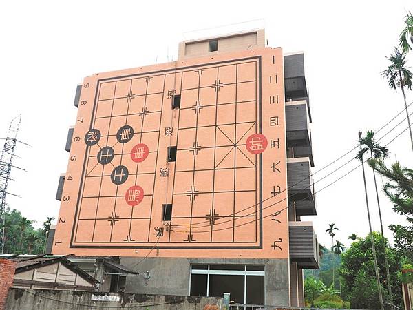 【本報南投訊】南投縣中寮鄉內城村有棟四樓半透天厝,其外觀牆面為巨大「象棋棋盤」,相當醒目,更因棋盤上的戰局仍在對弈中,許多人都在猜屋主用意,引發熱議;經了解,屋主是將「橘中祕」象棋棋譜的經典局勢搬上牆面,是和局,也象徵家和萬事興。