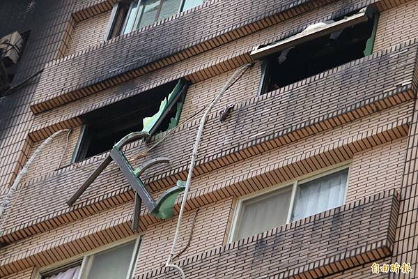 不少住戶也因此受困,好在警消獲報到場後,隨即進入大樓搜索,並協助破門,住戶們這才順利脫困。由於氣爆威力猛烈導致窗戶被炸破,牆壁被燻黑、物品也被燒毀,僅剩窗台空一個大洞,維修費和財損恐怕難以估計。