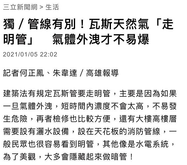 然而,若是幾戶受災,這幾戶的管線和大樓內的系統都要檢視,從安全裝置、雜物侵入防止、壓力監控、迴路系統逐步確認,以及進到家戶有無問題。「單純的那個原因,說法太避重就輕。」